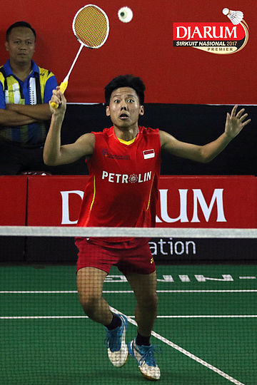 Setyaldi Putra (Pertamina Fastron) Mengembalikan Shuttlecock