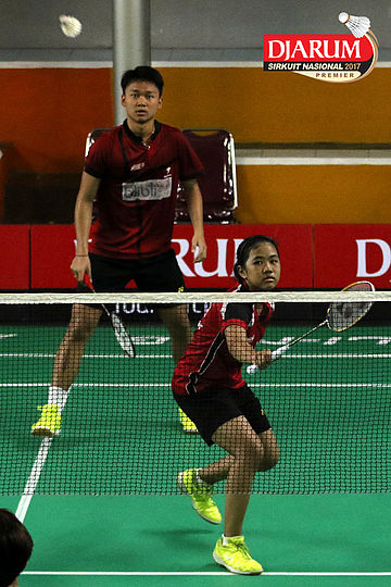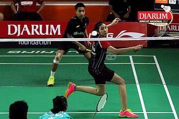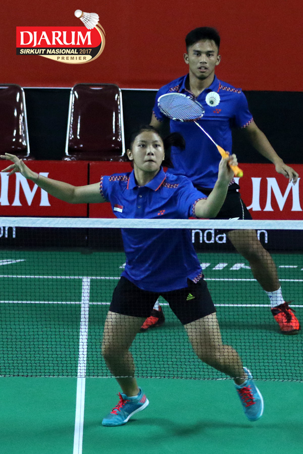 Rahmat Hidayat/Shelandry Vyola (Djarum Kudus) Mengembalikan Shuttlecock