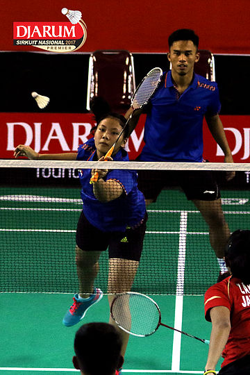I Putu Pande/Fauzia Kartikasari (Djarum Kudus) Mengembalikan Shuttlecock
