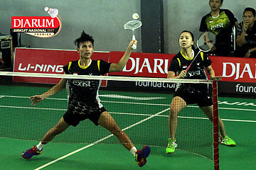 Tedi Supriadi/Devi Tika (Djarum Kudus/Berkat Abadi) Menyambar Pengembalian