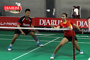 Tedi Supriadi/Devi Tika (Djarum Kudus/Berkat Abadi) Menghadang Serangan