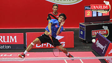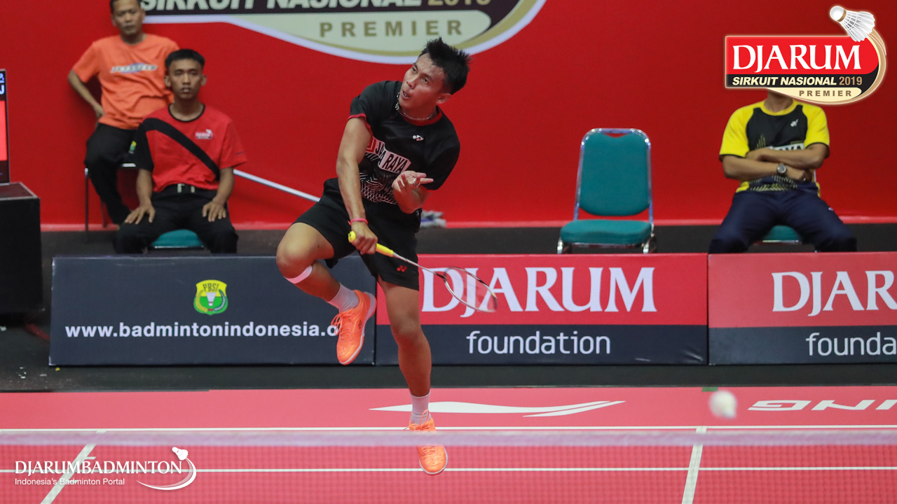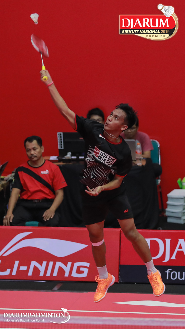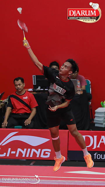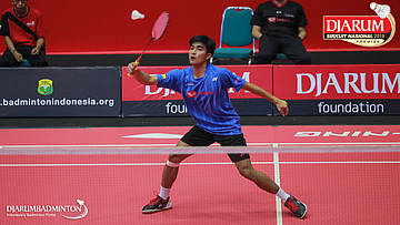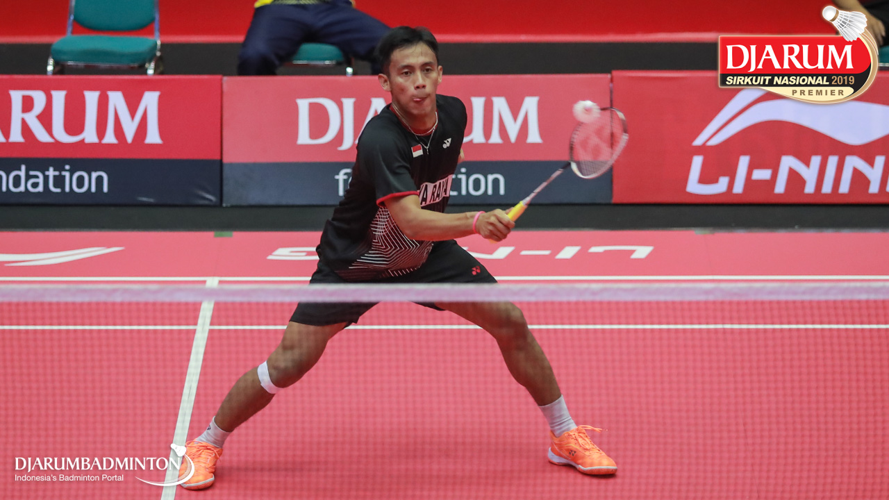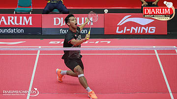 Panji Ahmad Maulana (Daihatsu Candra Wijaya) menyambut shuttlecock