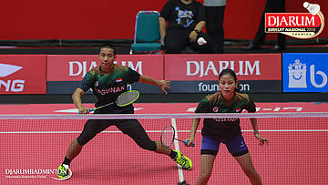 Sandy Arifa Putra+Vania Dyla Pratiwi (PB Victory Bogor, Jaktim+Jaya Raya Jakarta) bersiap melepaskan serangan