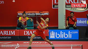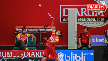 Rizma Anestasy Violeta (Sangkuriang Graha Sarana PLN Bandung) mengembalikan shuttlecock