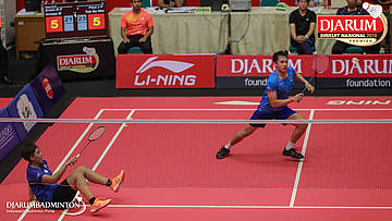 Rian Swastedian+Fee Teng Liew (Jaya Raya Jakarta+Malaysia) menyambut shuttlecock