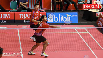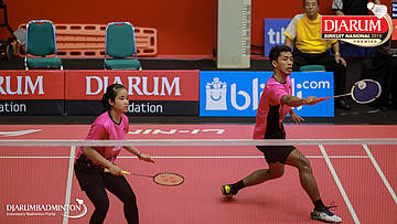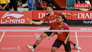 Riyanto Subagja+Tiara Rosalia Nuraidah (Pertamina Fastron, Jakut) bersiap menyambut servis