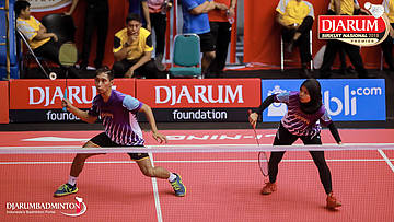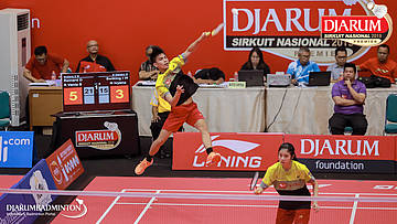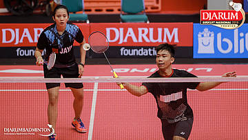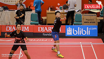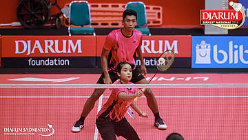 Swiking Imanuel Wuisan+Nathalie Ivyana (Daihatsu Candra Wijaya) bersiap menyambut shuttlecock