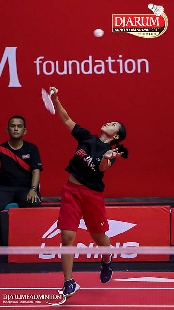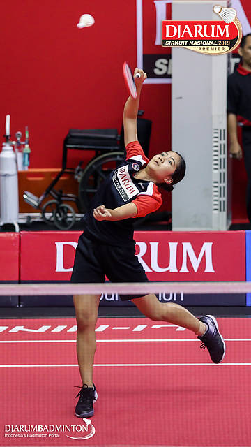 Desima Aqmar Syarafina (PB Djarum, Kudus) bersiap menyambar pengembalian
