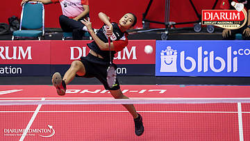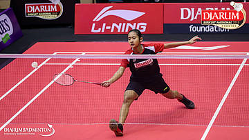 Desima Aqmar Syarafina (PB Djarum, Kudus) melepaskan serangan