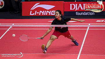 Desima Aqmar Syarafina (PB Djarum, Kudus) bersiap menyambut shuttlecock