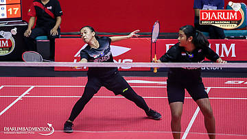 Amalia Cahaya Pratiwi+Febriana Dwipuji Kusuma (Pelatnas) mengembalikan shuttlecock