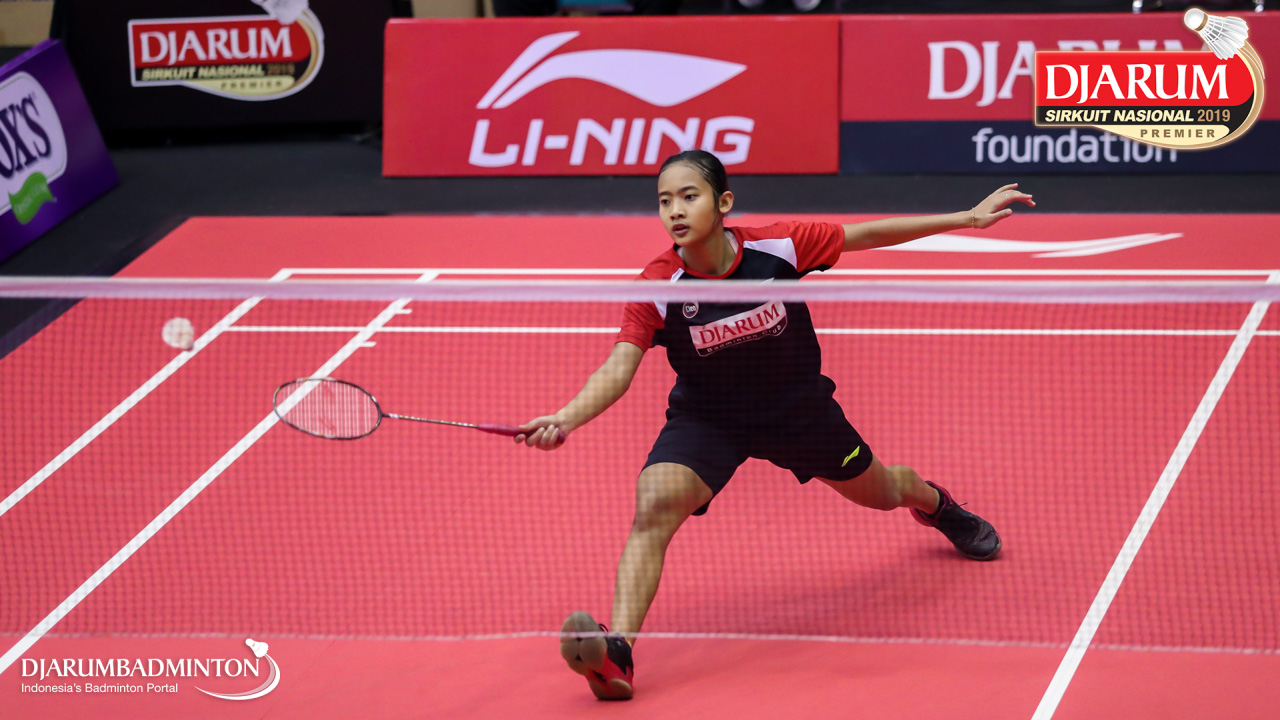 Irdina Naurah Mirza (PB Djarum, Kudus) menggapai pengembalian
