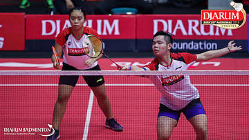 Alan Darmasaputra Kristanto+Berliona Alma Pradisa (PB Djarum, Kudus) berusaha mengembalikan serangan