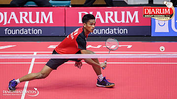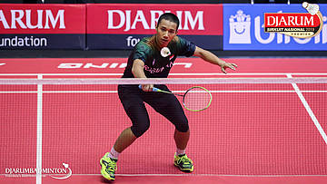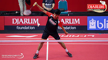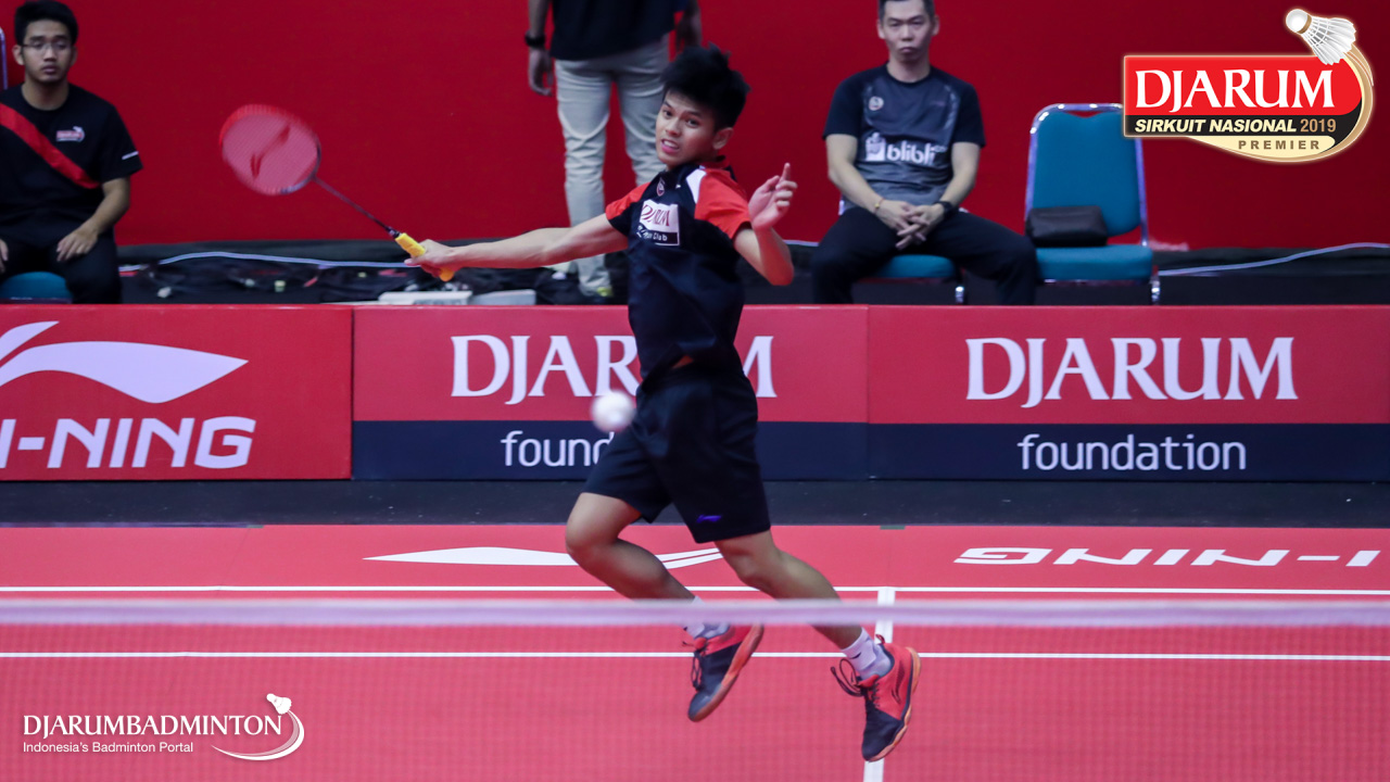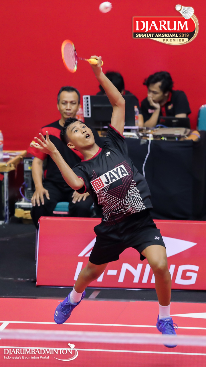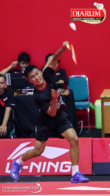 Aldy Firmanda (PB Djarum, Kudus) melepaskan serangan