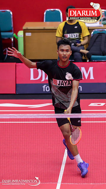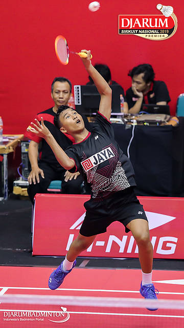 Muhammad Sultan Nurhabibullah Mayang (Jaya Raya Jakarta) bersiap menyambut shuttlecock