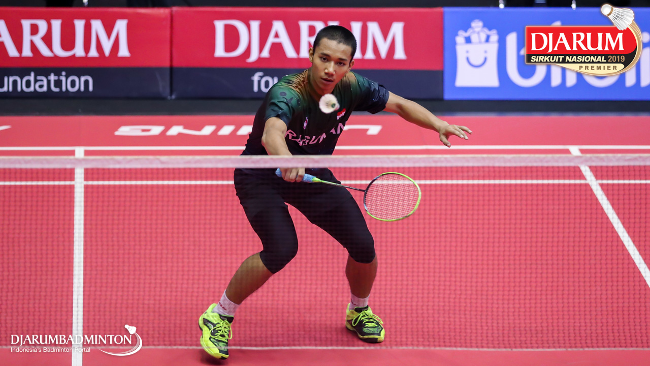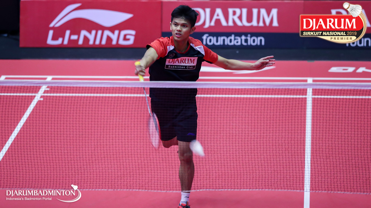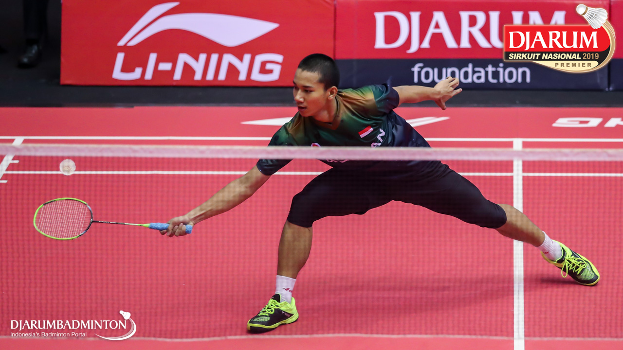 Aldy Firmanda (PB Djarum, Kudus) berusaha melakukan pertahanan