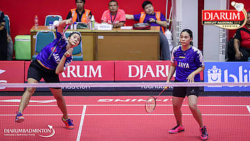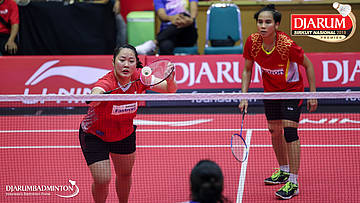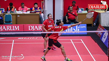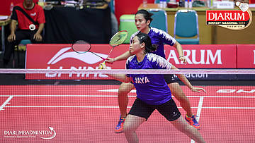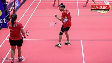 Nadiya Melati+Tiara Rosalia Nuraidah (Pertamina Fastron, Jakut) menyambut shuttlecock