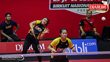 Denisa Dwi Syawaliah Budiani+Lanny Tria Mayasari (Jaya Raya Jakarta) bersiap menyambut pengembalian