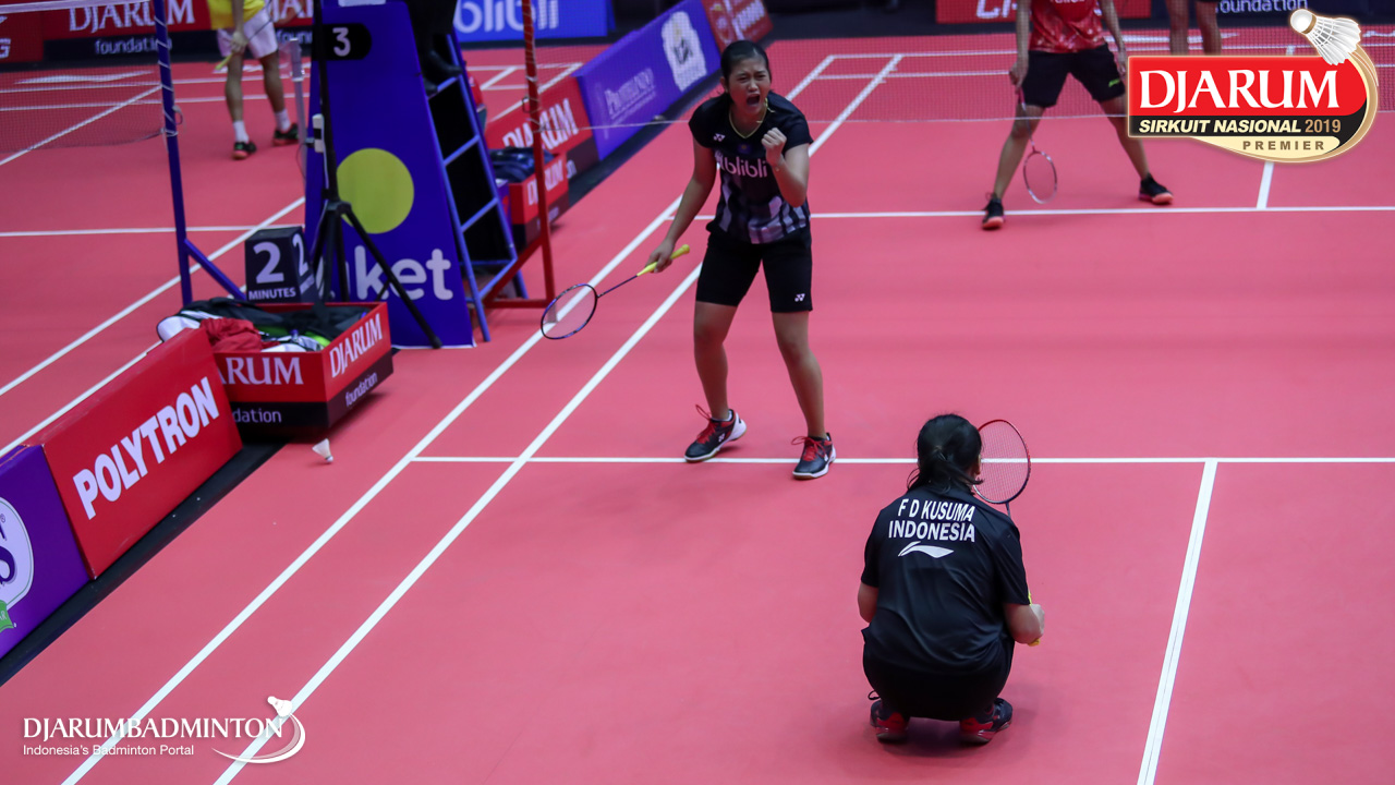 Selebrasi kemenangan Amalia Cahaya Pratiwi+Febriana Dwipuji Kusuma (Pelatnas)
