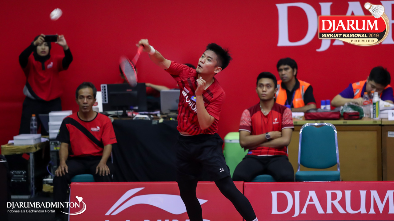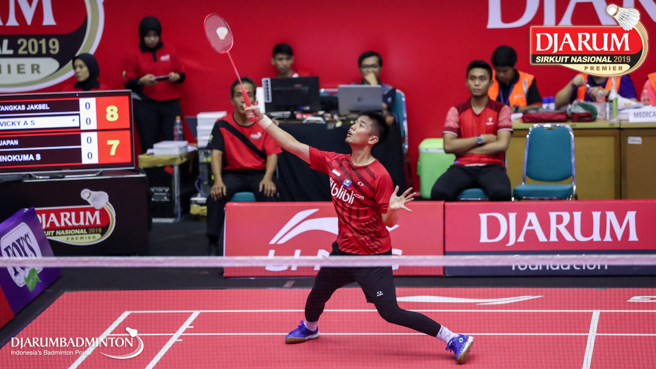 Vicky Angga Saputra (Tangkas , Jaksel) menyambut shuttlecock