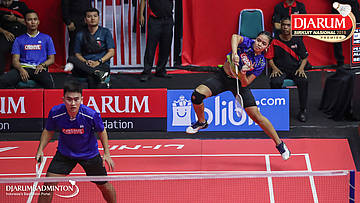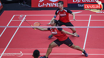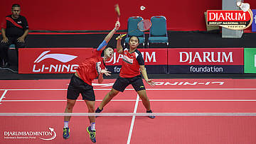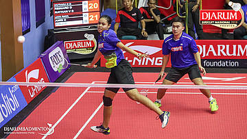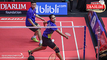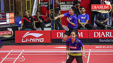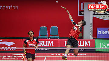 Alan Darmasaputra Kristanto+Berliona Alma Pradisa (PB Djarum, Kudus) menyambar shuttlecock