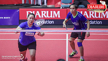 Nadiya Melati+Tiara Rosalia Nuraidah (Pertamina Fastron, Jakut) bersiap menyambut shuttlecock