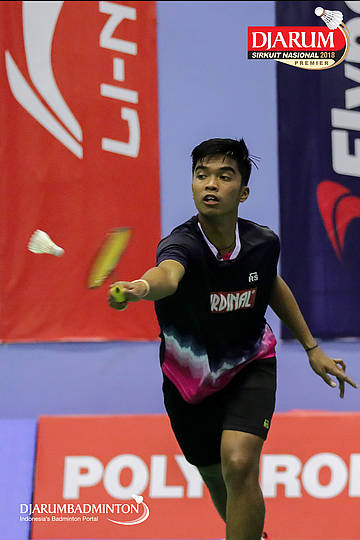 Aldy Firmanda (PB Djarum, Kudus) menyambar pengembalian