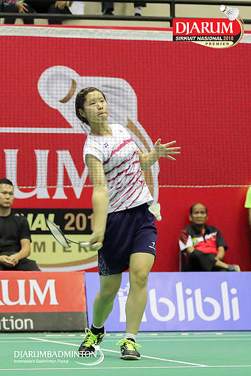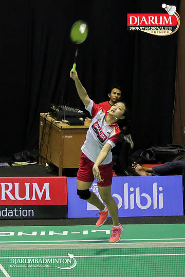 Savira Sandradewi (PB Djarum, Kudus) melakukan smash