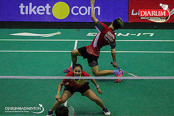 Crisandy Santosa/Melani Mamahit (Exist, Jakarta) gagal mengembalikan serangan