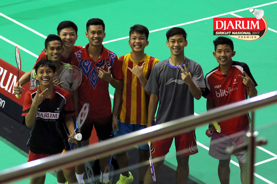 Sejumlah Pebulutangkis Tunggal Putra Djarum Kudus Berpose Usai Berlatih