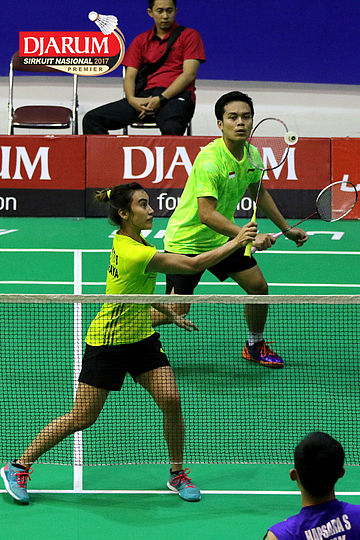 Reza Dwicahya Purnama/Bellaetrix Manuputty (Jaya Raya) Mengembalikan Shuttlecock