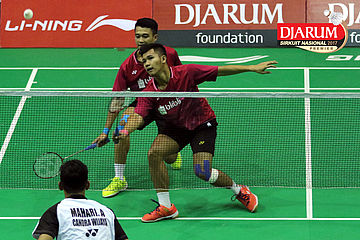 Ardy Nugroho/Ario Bimo (Djarum Kudus) Mengembalikan Shuttlecock