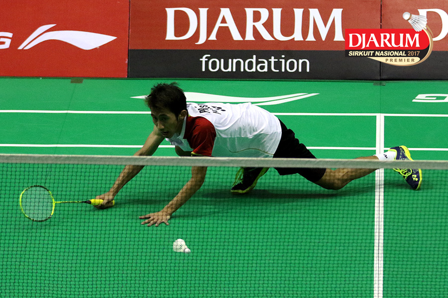 Wisnu Yuli (Djarum Kudus) Terjatuh Saat Menghadang Serangan
