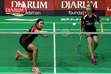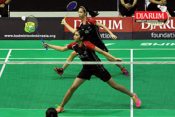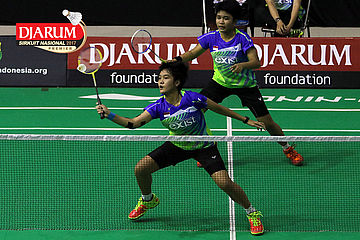 Kelly Larissa/Shelandry Vyola (Djarum Kudus) Mengembalikan Shuttlecock