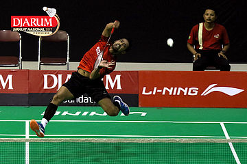Wisnu Yuli (Djarum Kudus) Mengembalikan Shuttlecock