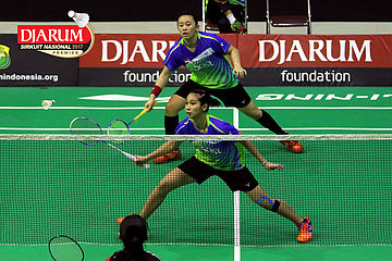 Dian Fitriani/Nadya Melati (Pertamina Fastron) Melepaskan Serangan