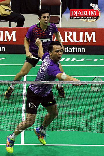 Hendra Aprida Gunawan/Rizko Asuro (Djarum Kudus/Pertamina Fastron) Menyambar Pengembalian