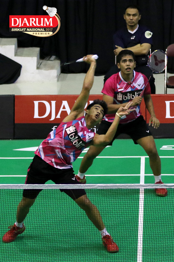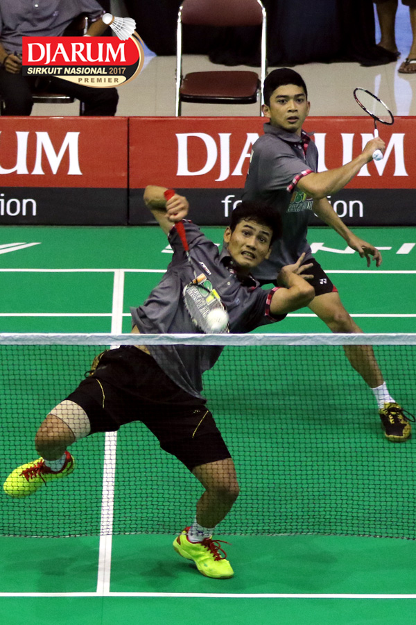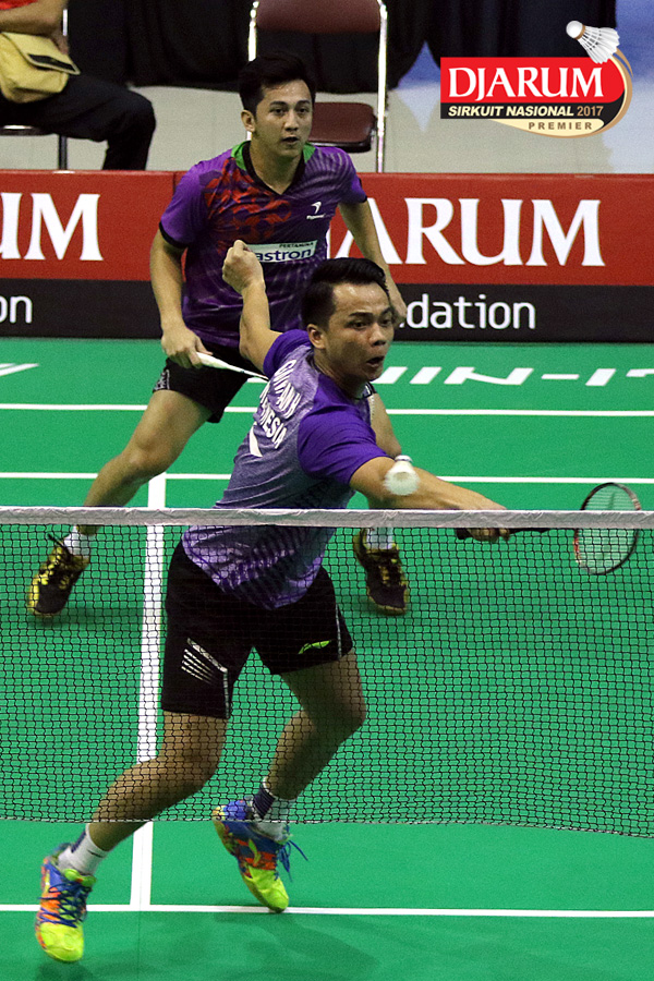 Hendra Aprida Gunawan/Rizko Asuro (Djarum Kudus/Pertamina Fastron) Menghadang Serangan