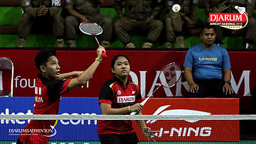 Amri Syahnawi/Shela Devi Aulia (Jaya Raya Jakarta) Mengembalikan Shuttlecock