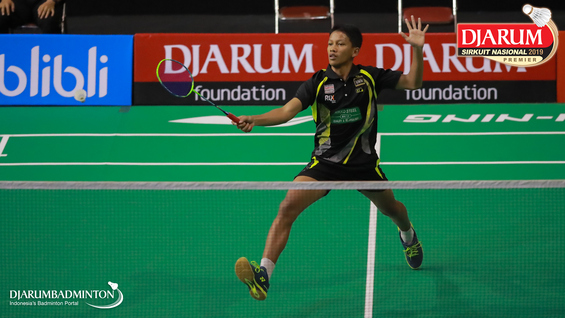 Aldy Firmanda (PB Djarum, Kudus) melepaskan serangan