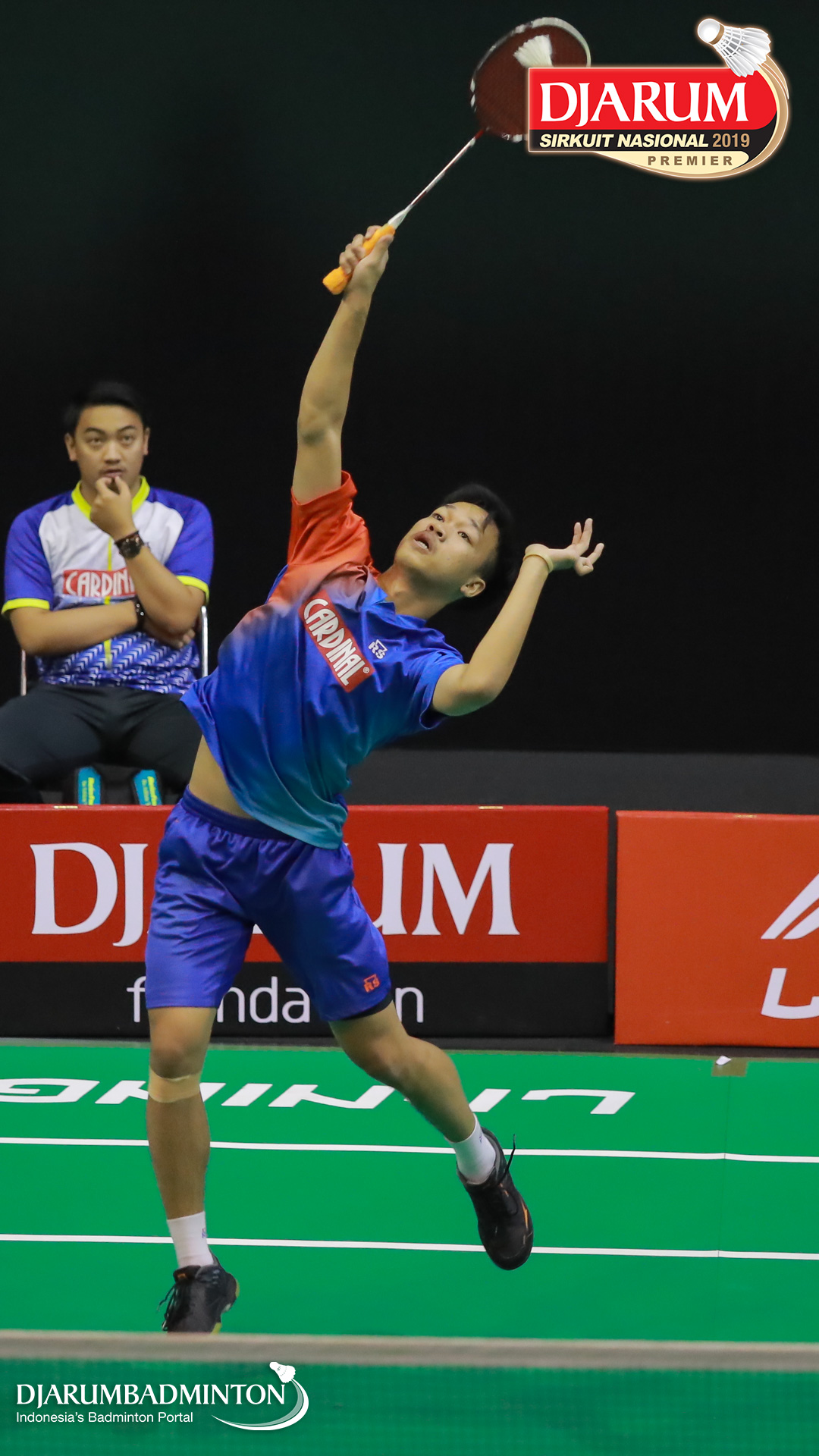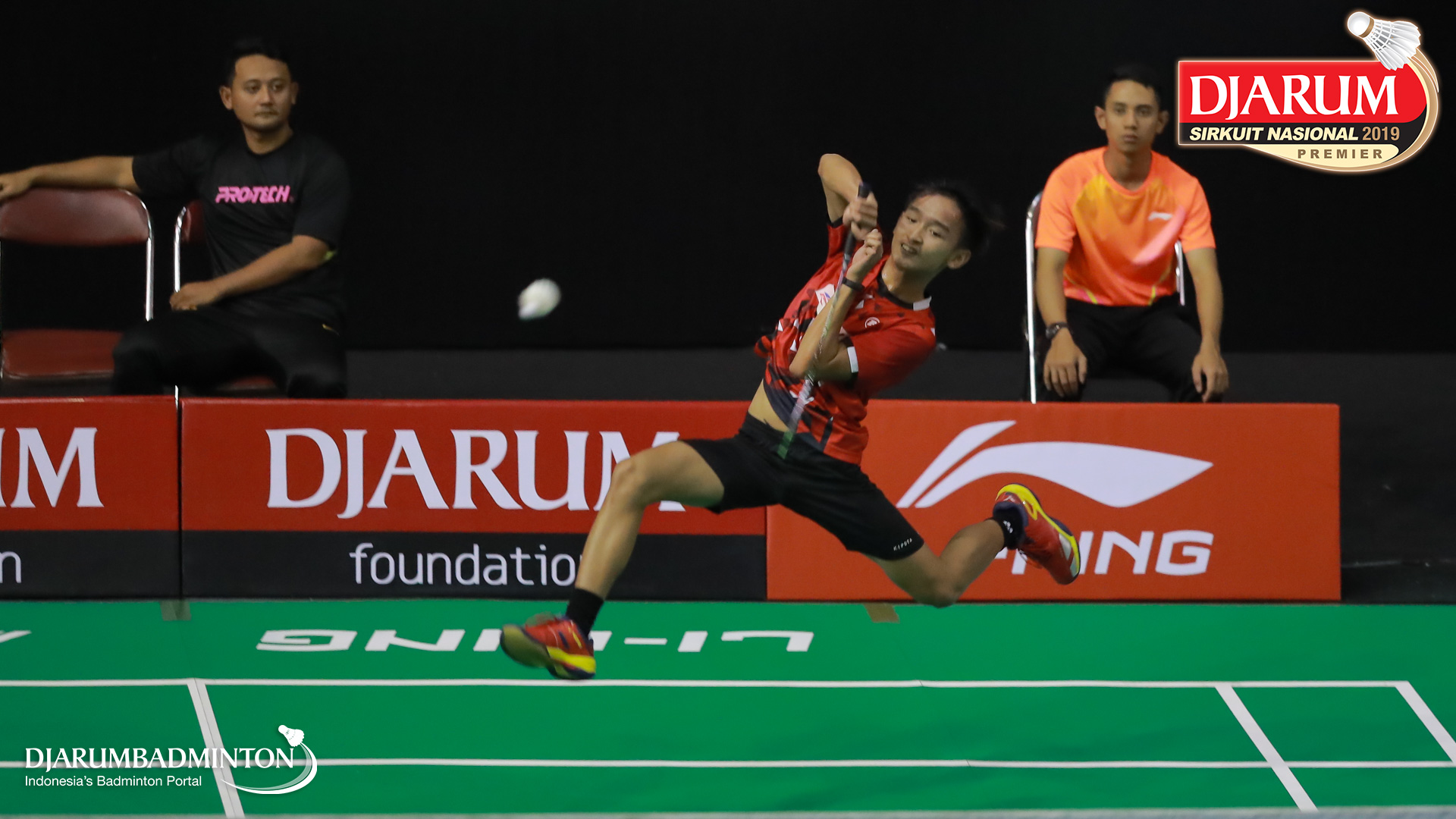 Daniel Ari Wibisono Setio (Sarwendah Badminton Club, Jaktim) menyambut shuttlecock