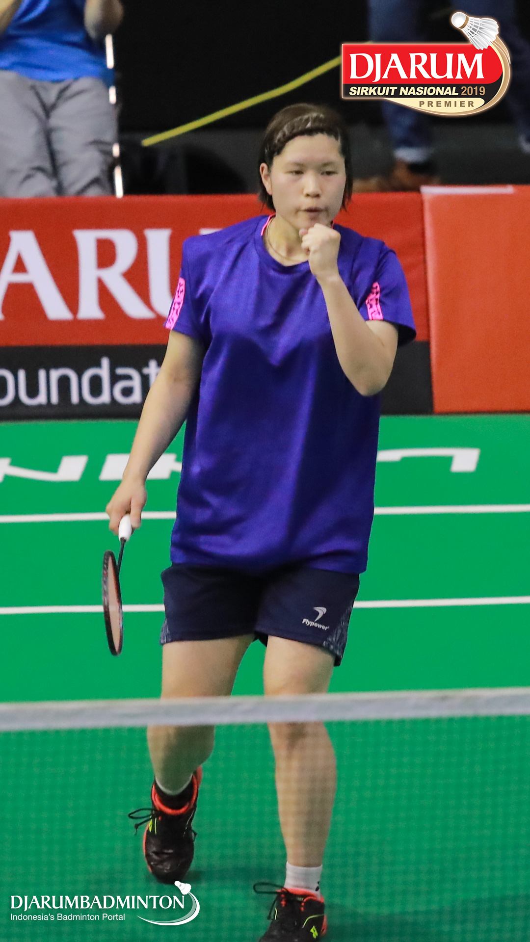 Ayaho Sugino (JAPAN) mengembalikan shuttlecock