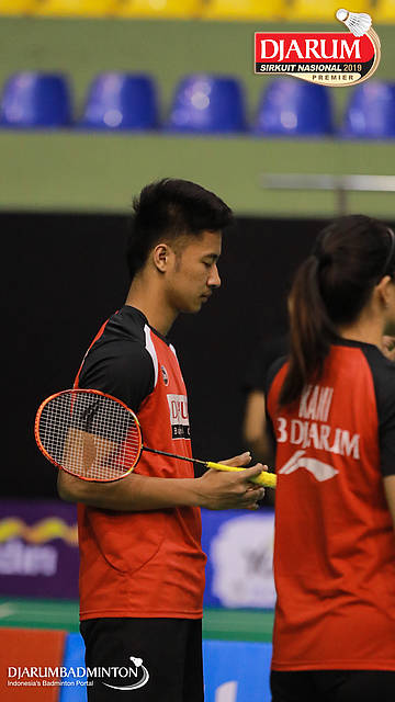 Dejan Ferdinansyah (PB Djarum, Kudus) berdoa saat dilapangan sebelum bertanding