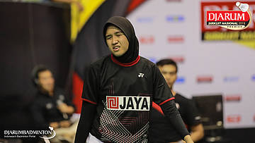 Sheila Dinda Kurniawan (Jaya Raya Jakarta) bersiap menyambut shuttlecock
