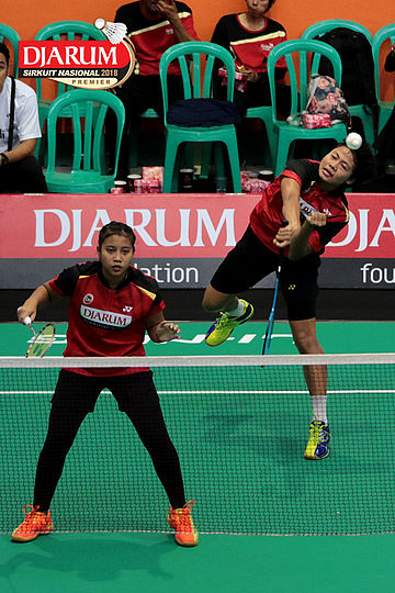 Muzammi Elya/Yely Diyunsari (PB Djarum Kudus) Melepaskan Serangan
