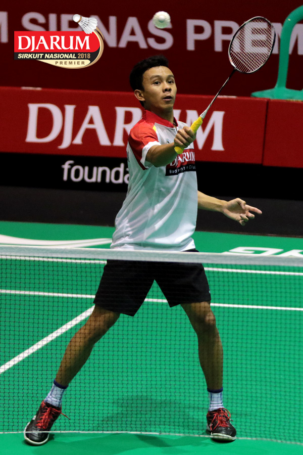 Ramadhani M. Zulkifli (PB Djarum Kudus) Mengembalikan Shuttlecock