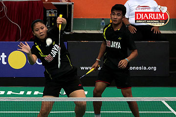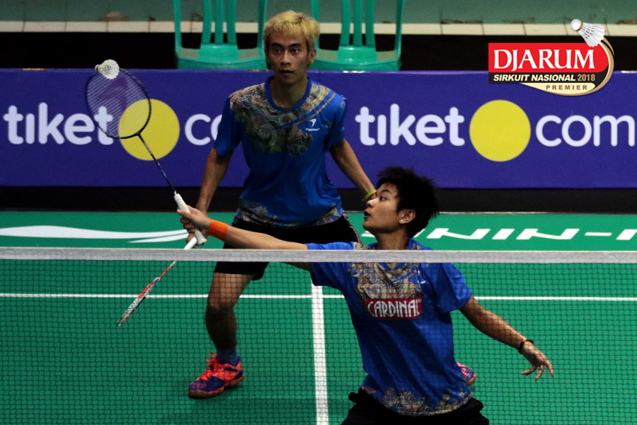 Zachariah Josiahno/Serena Kani (Tangkas Intiland/PB Djarum Kudus) Mengembalikan Shuttlecock