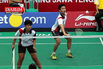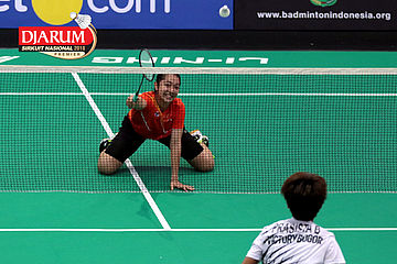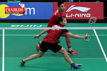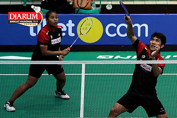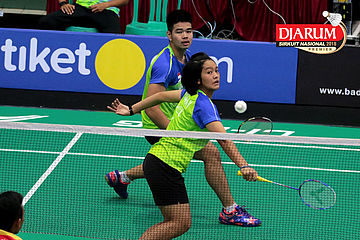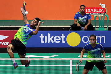 Lukhi Apri Nugroho/Ririn Amelia (Berkat Abadi/PB Djarum Kudus) Mengembalikan Shuttlecock