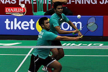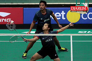 Helmi Abbu Hanifa/Muchammad Choirunnizar Chan (Jaya Raya) Mengembalikan Shuttlecock