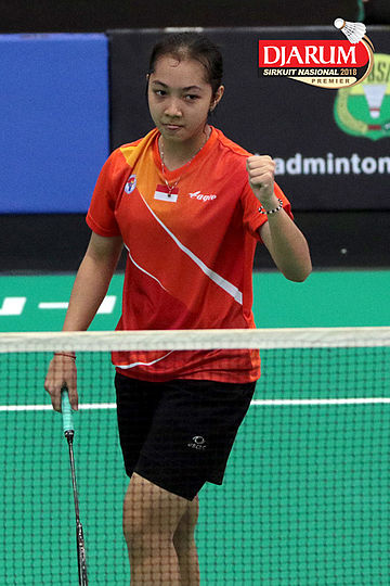 I Putu Pande Sheva Brahmantya Putra/Fauzia Kartikasari (PB Djarum Kudus) Mengembalikan Shuttlecock